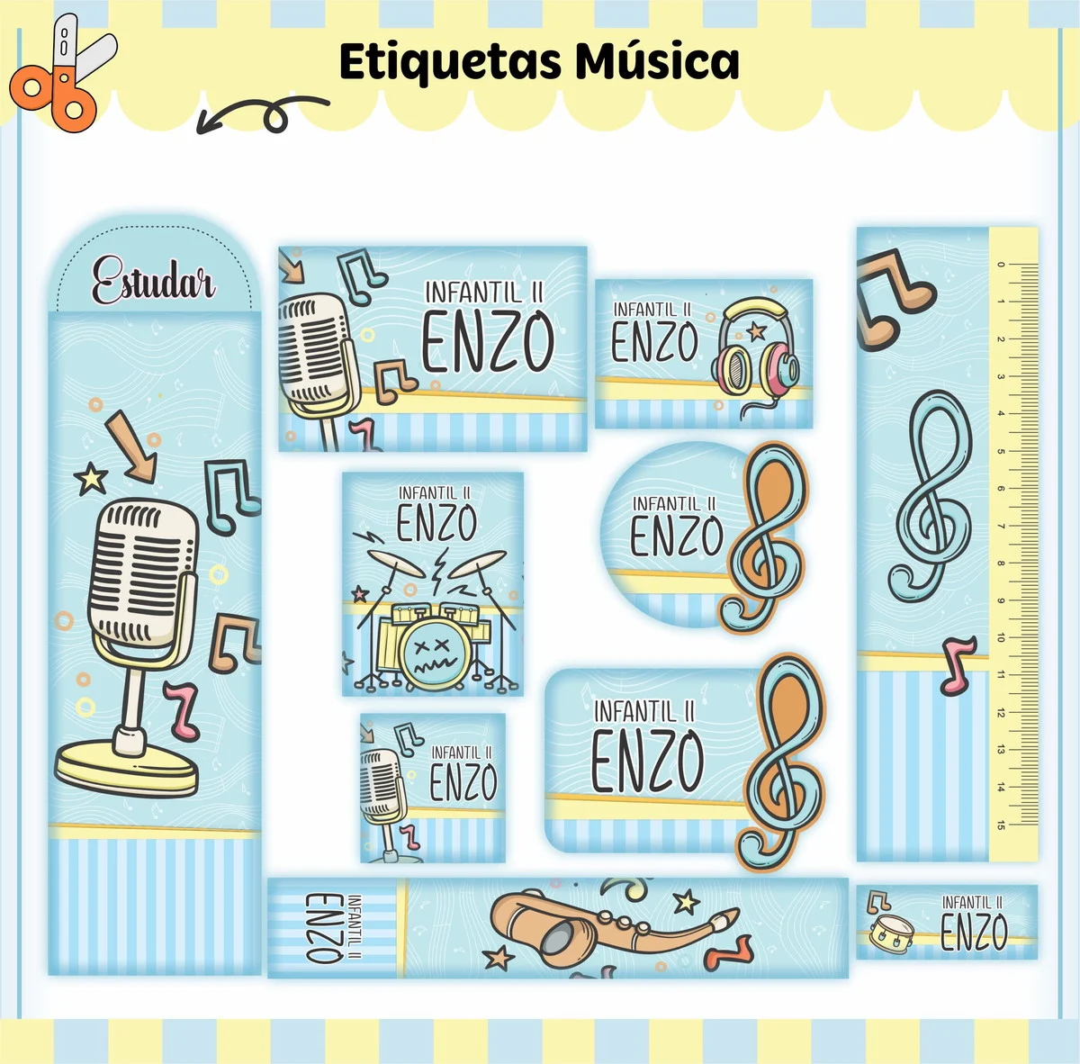 Etiqueta Escolar Musica Studio, Png e Pdf. Ideal para o início do ano letivo, aniversários, eventos escolares ou para facilitar a identificação de materiais de uso coletivo,