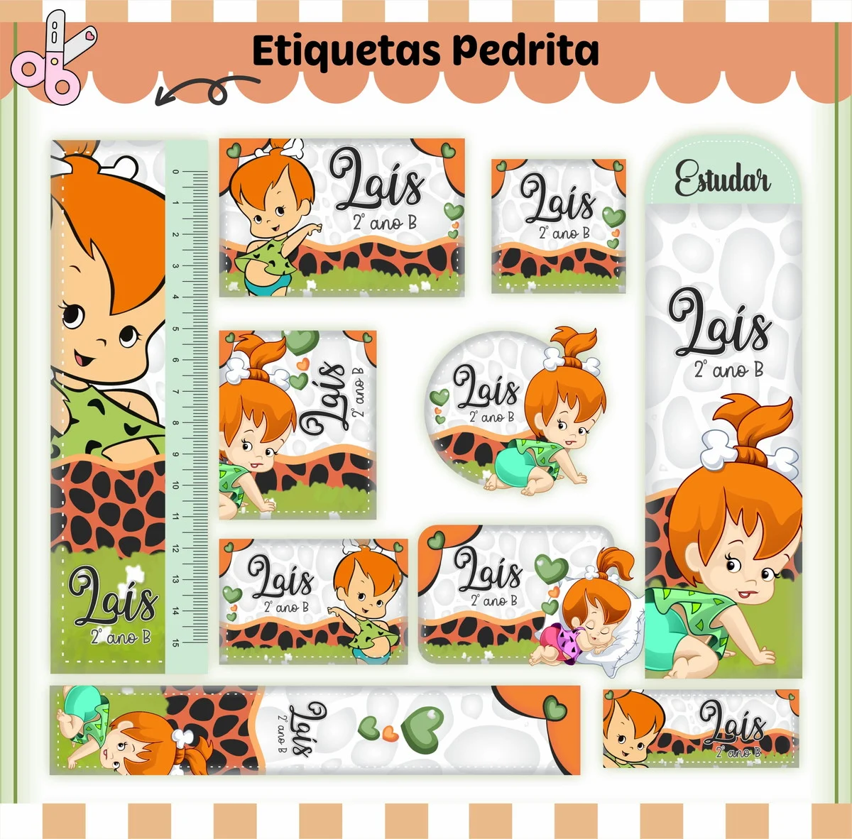 Etiqueta Escolar Pedrita Studio, Png e Pdf. Ideal para o início do ano letivo, aniversários, eventos escolares ou para facilitar a identificação de materiais de uso coletivo,