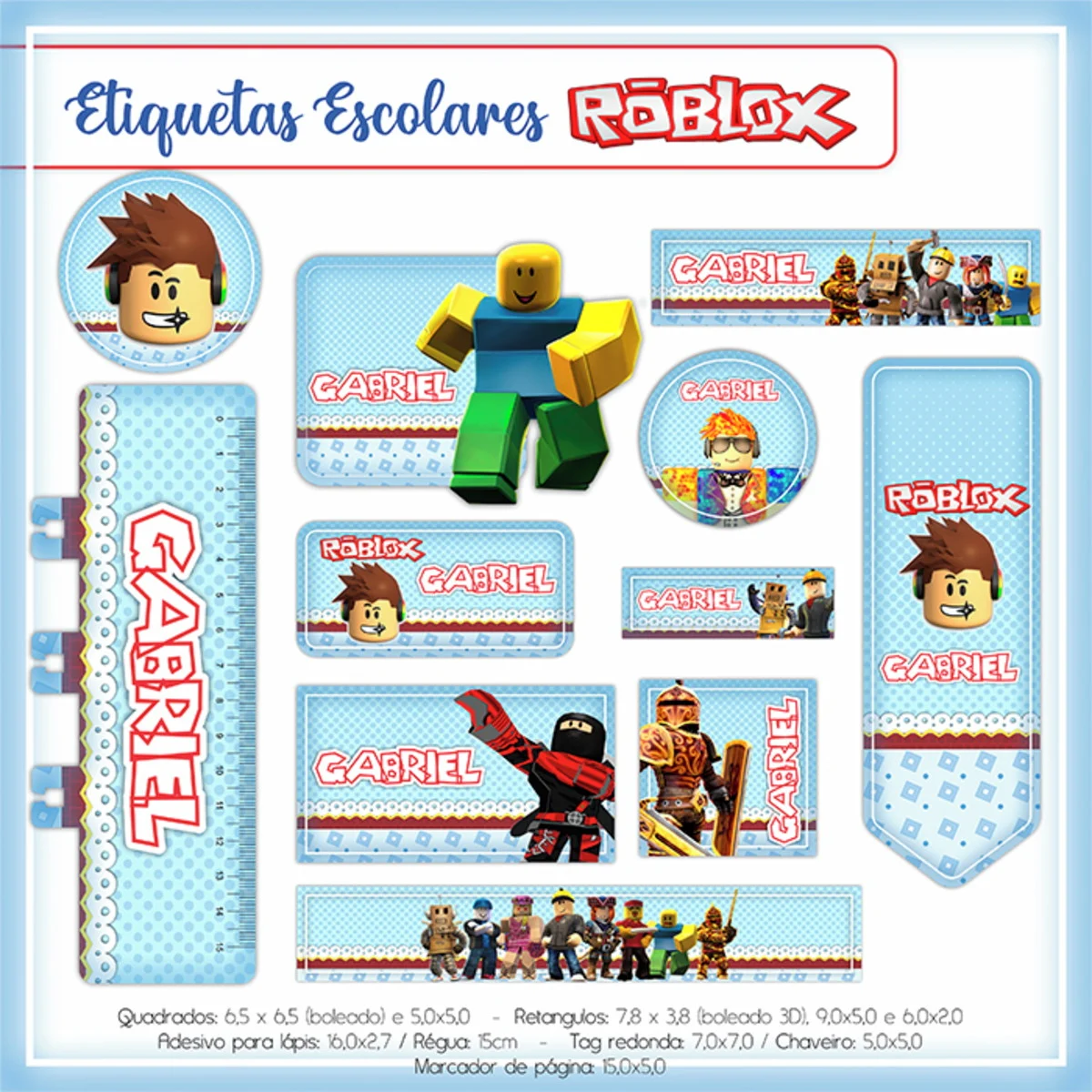Etiqueta Escolar Roblox Studio e Pdf. Ideal para o início do ano letivo, aniversários, eventos escolares ou para facilitar a identificação de materiais de uso coletivo,