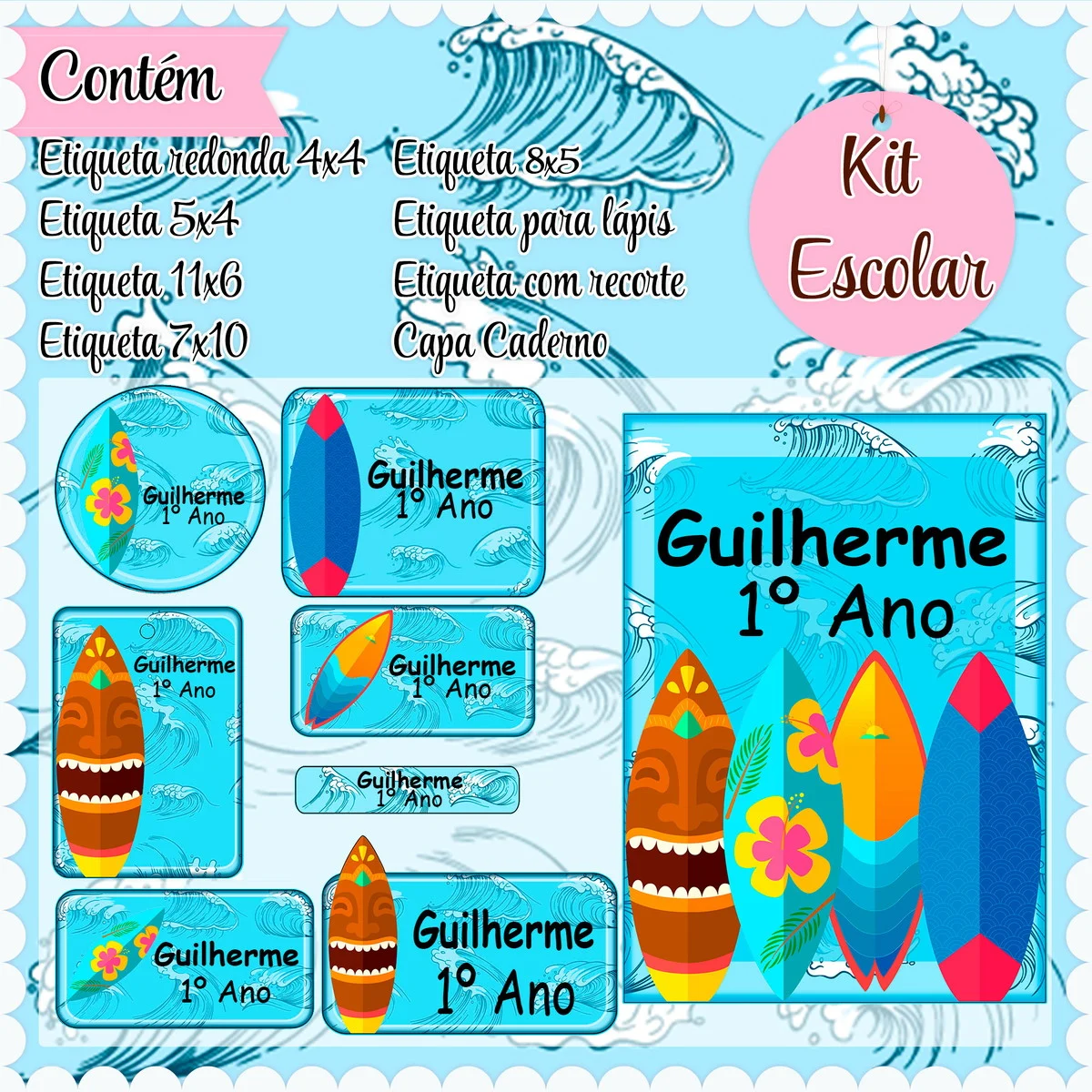 Transforme a organização escolar com nosso Etiqueta Escolar Surf Studio, Png e Pdf, desenvolvido especialmente para facilitar a personalização e impressão em casa! Ideal para pais, alunos e educadores, esse arquivo oferece praticidade e estilo na hora de identificar itens escolares, como mochilas, cadernos, lápis, e muito mais.