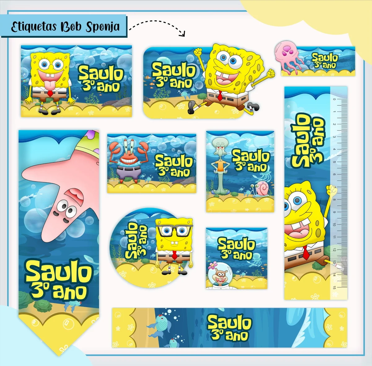 Transforme a organização escolar com nosso Etiqueta Escolar Tema Bob Esponja, desenvolvido especialmente para facilitar a personalização e impressão em casa! Ideal para pais, alunos e educadores, esse arquivo oferece praticidade e estilo na hora de identificar itens escolares, como mochilas, cadernos, lápis, e muito mais.