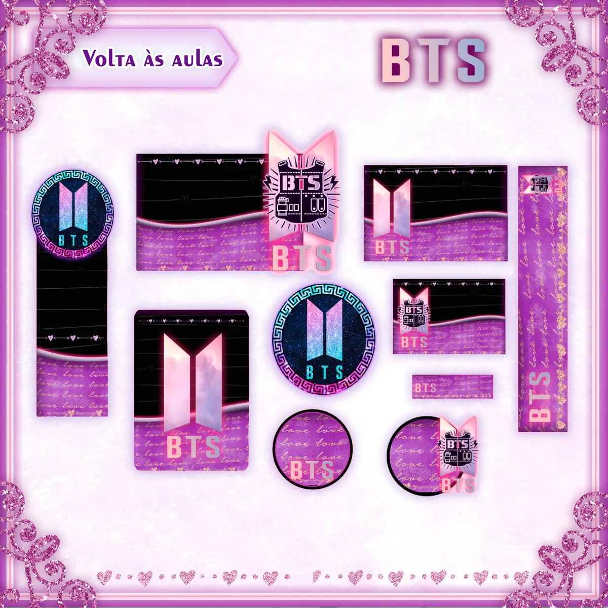 Etiqueta Escolar Tema Bts Studio e Pdf. Ideal para o início do ano letivo, aniversários, eventos escolares ou para facilitar a identificação de materiais de uso coletivo,