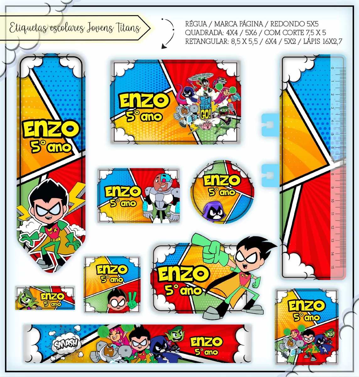 Transforme a organização escolar com nosso Etiqueta Escolar Tema Jovens Titãs, desenvolvido especialmente para facilitar a personalização e impressão em casa! Ideal para pais, alunos e educadores, esse arquivo oferece praticidade e estilo na hora de identificar itens escolares, como mochilas, cadernos, lápis, e muito mais.