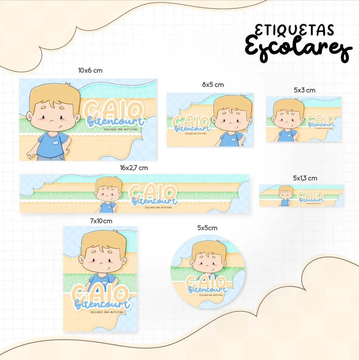 Etiqueta Escolar Tema Menino Loiro. Ideal para o início do ano letivo, aniversários, eventos escolares ou para facilitar a identificação de materiais de uso coletivo,