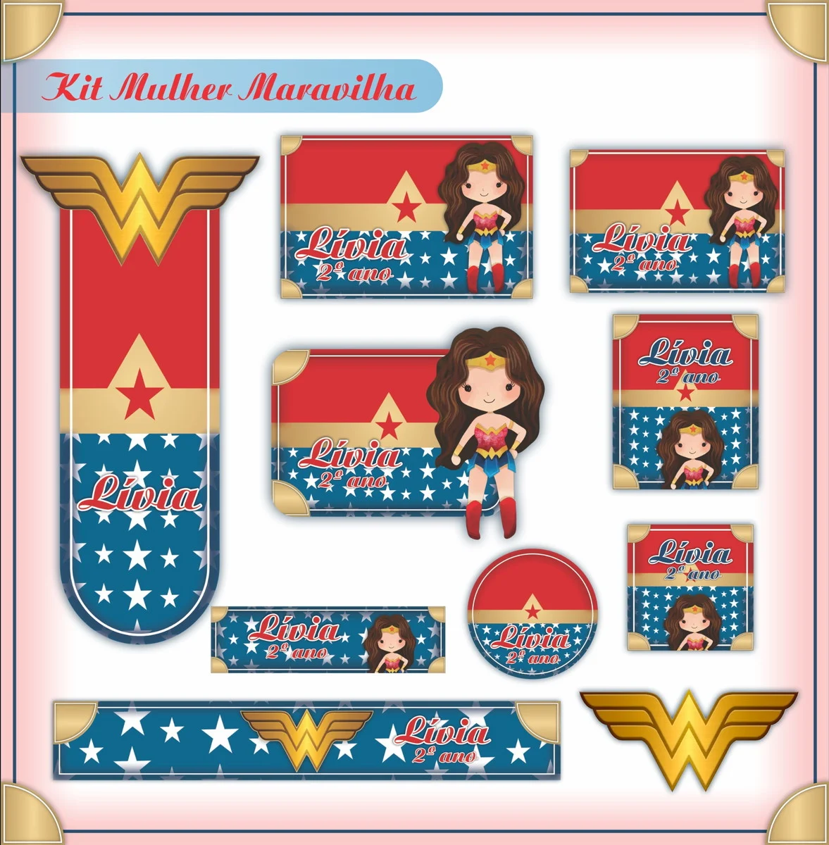 Etiqueta Escolar Tema Mulher Maravilha. Ideal para o início do ano letivo, aniversários, eventos escolares ou para facilitar a identificação de materiais de uso coletivo,