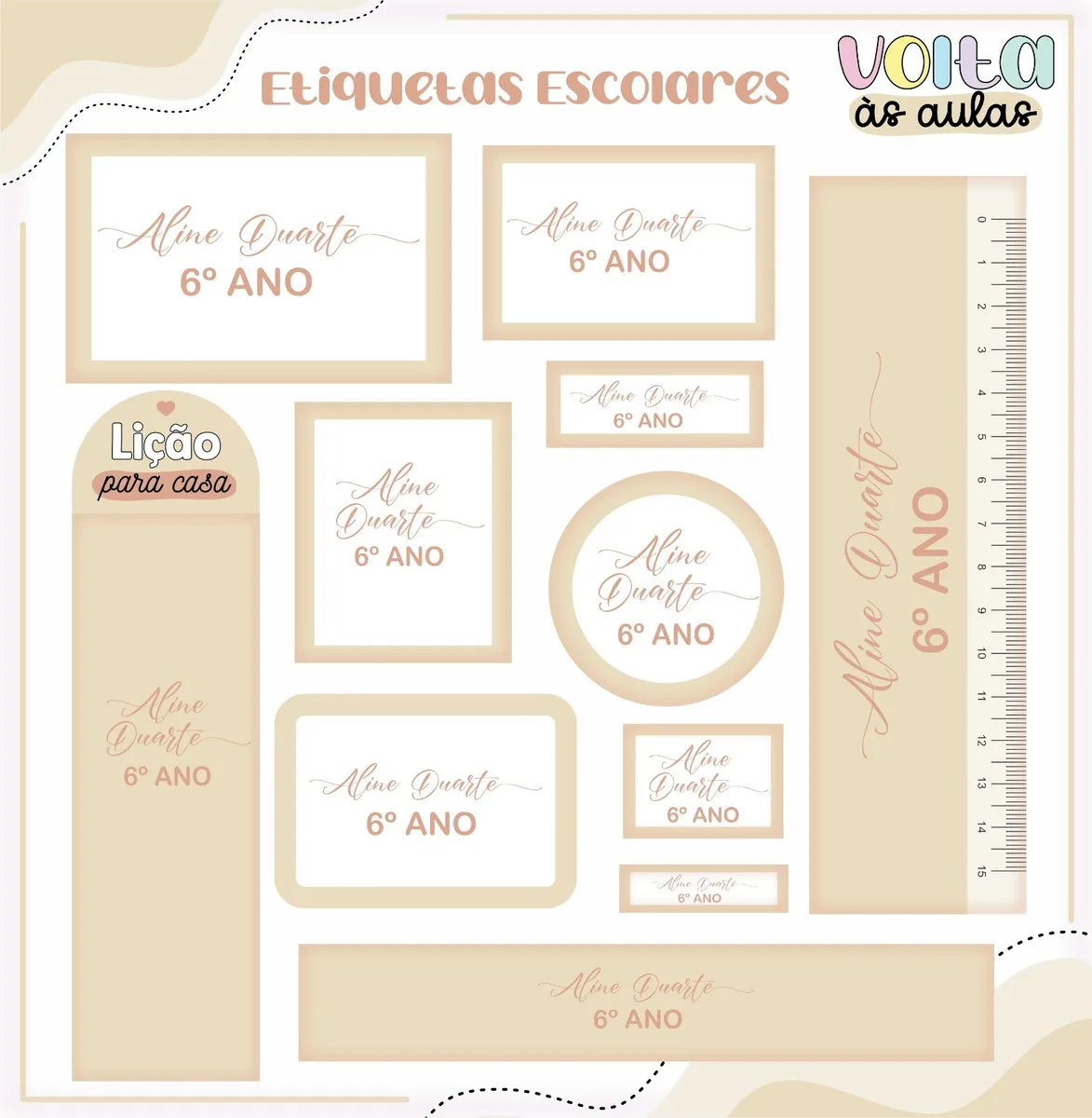 Etiqueta Escolar Tema Neutro Bege. Ideal para o início do ano letivo, aniversários, eventos escolares ou para facilitar a identificação de materiais de uso coletivo,