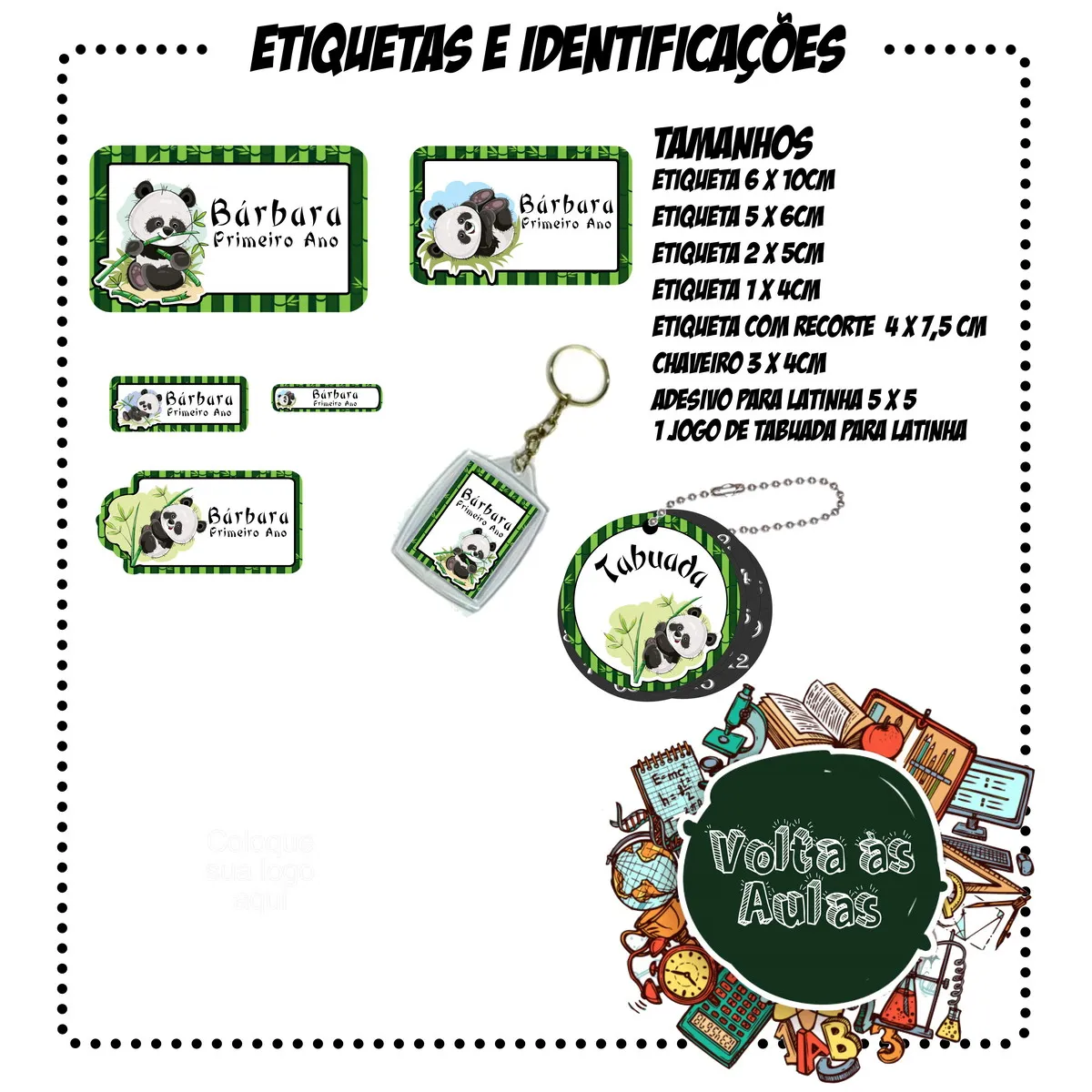 Etiqueta Escolar Tema Panda Studio. Ideal para o início do ano letivo, aniversários, eventos escolares ou para facilitar a identificação de materiais de uso coletivo,