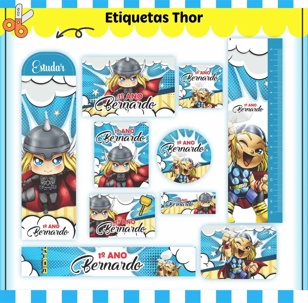 Etiqueta Escolar Thor Studio, Png e Pdf. Ideal para o início do ano letivo, aniversários, eventos escolares ou para facilitar a identificação de materiais de uso coletivo,