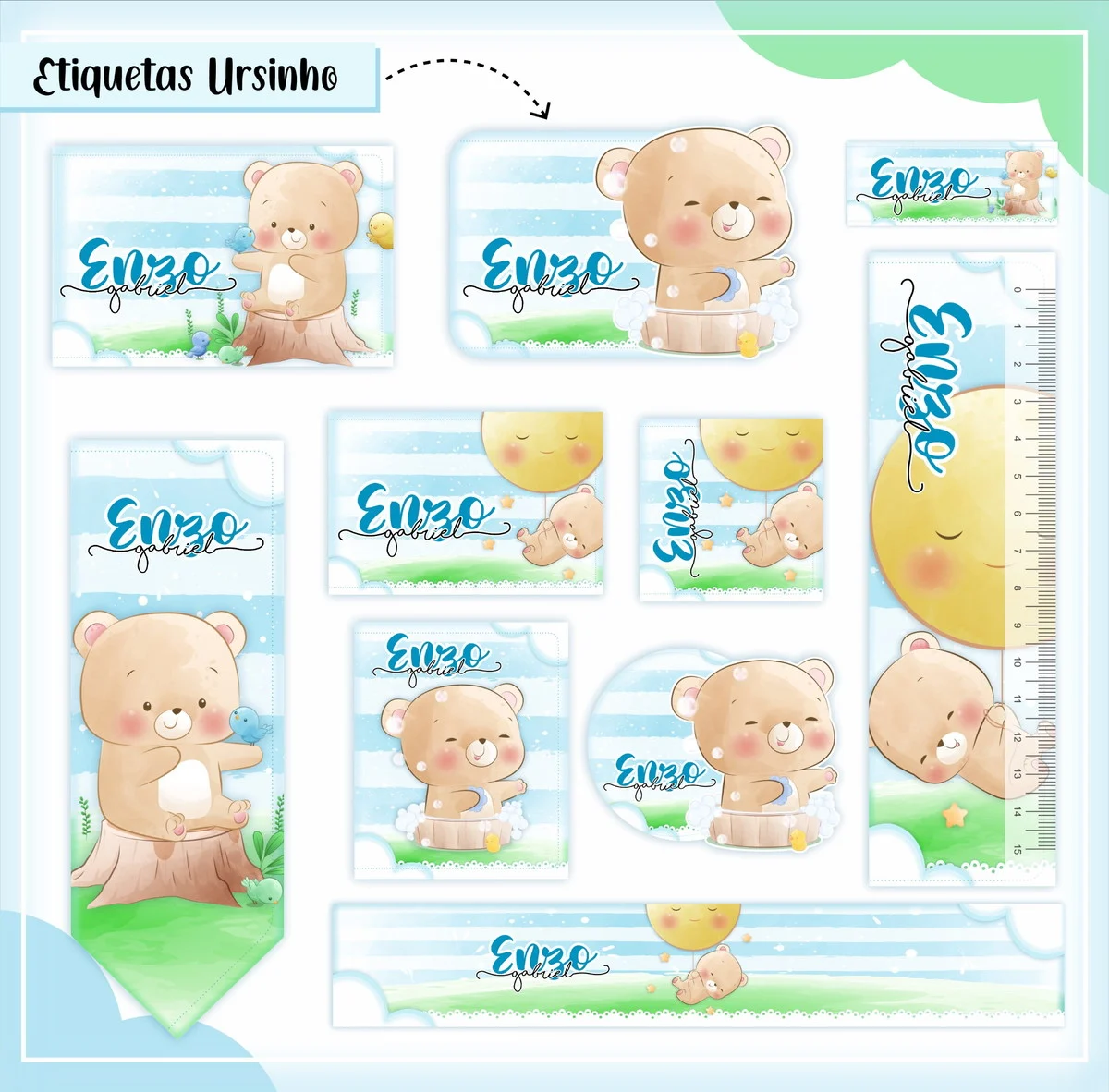 Etiqueta Escolar Ursinho Studio, Png e Pdf. Ideal para o início do ano letivo, aniversários, eventos escolares ou para facilitar a identificação de materiais de uso coletivo,