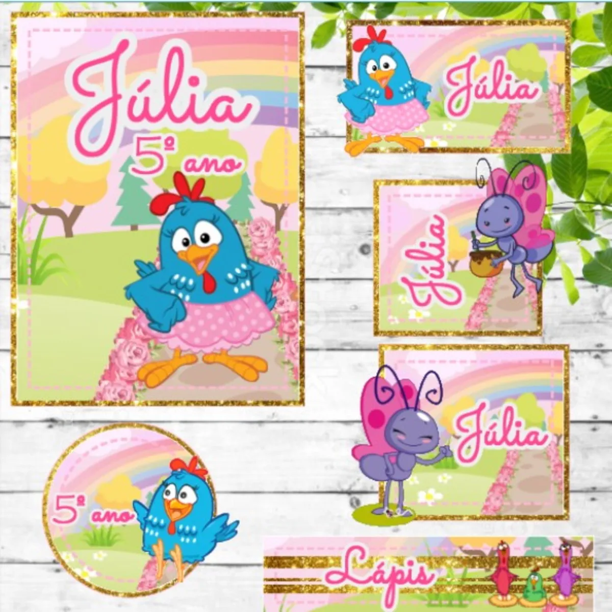Etiqueta Tema Galinha Candy Studio e Pdf. Ideal para o início do ano letivo, aniversários, eventos escolares ou para facilitar a identificação de materiais de uso coletivo,