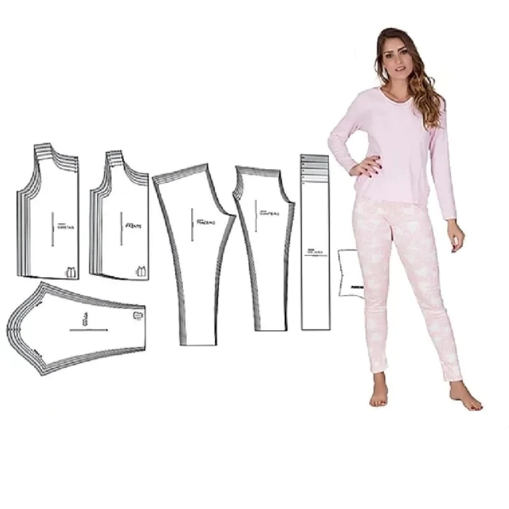 Esse gabarito facilita a criação de roupas sob medida, ajudando a economizar tempo e a garantir um ajuste perfeito. Gabarito Costura Conjunto Pijama Feminino. Além disso, ele é ideal para ser reutilizado diversas vezes, o que o torna uma ferramenta durável e prática para ateliês e oficinas de costura. O molde pode ser usado tanto para iniciantes, que buscam facilitar o processo de confecção, quanto para profissionais que buscam precisão na modelagem.