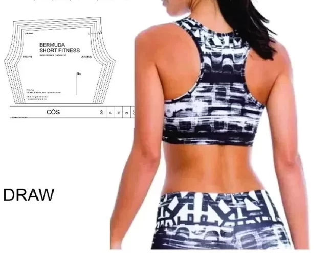 Esse gabarito facilita a criação de roupas sob medida, ajudando a economizar tempo e a garantir um ajuste perfeito. Gabarito Top Nadador + Short Bermuda Fitness. Além disso, ele é ideal para ser reutilizado diversas vezes, o que o torna uma ferramenta durável e prática para ateliês e oficinas de costura. O molde pode ser usado tanto para iniciantes, que buscam facilitar o processo de confecção, quanto para profissionais que buscam precisão na modelagem.