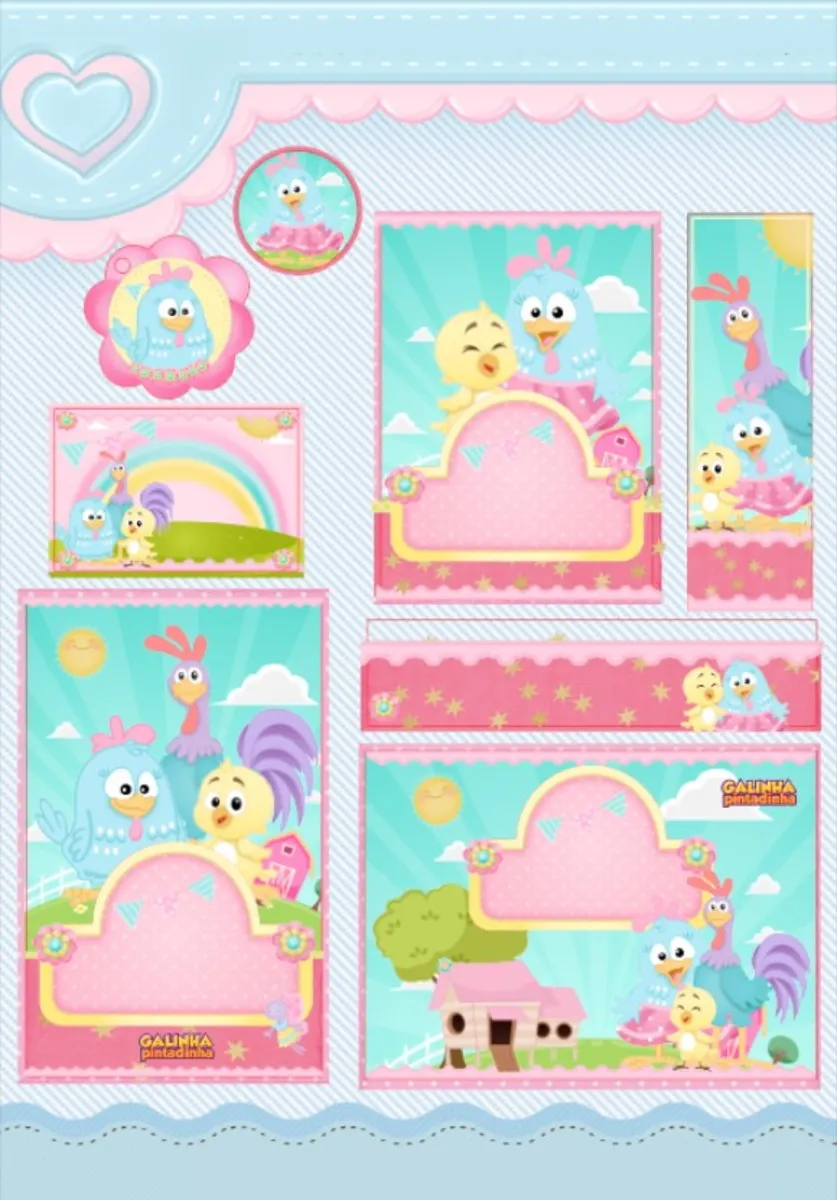 Molde Digital Etiqueta Escolar Galinha. Ideal para o início do ano letivo, aniversários, eventos escolares ou para facilitar a identificação de materiais de uso coletivo,