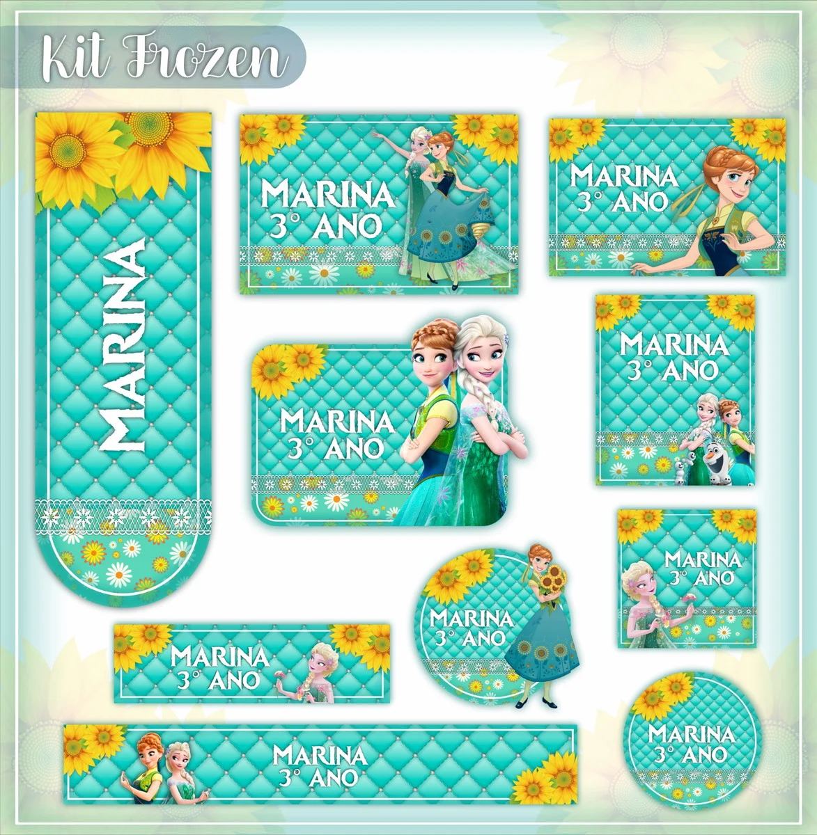 Molde Etiqueta Escolar Tema Frozen. Ideal para o início do ano letivo, aniversários, eventos escolares ou para facilitar a identificação de materiais de uso coletivo,