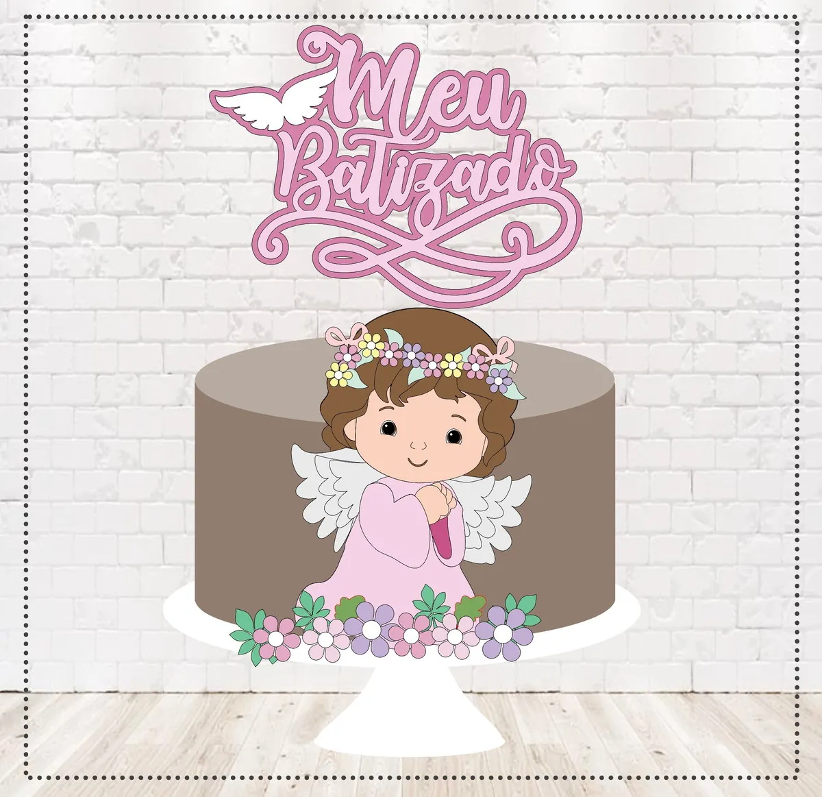 🎨 Decoração delicada com Topo de Bolo de Batizado Feminino Studio