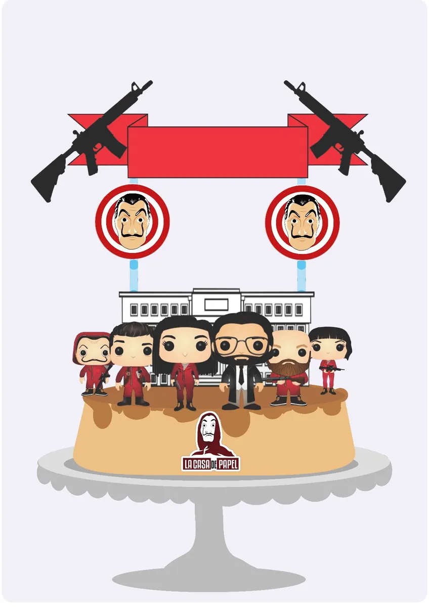 Dê asas à sua criatividade e divirta-se criando lindos projetos com esses Topo de Bolo La Casa de Papel Studio, O nosso arquivo contém uma variedade de modelos de corte, incluindo elementos populares, Com esses elementos, você poderá criar lindas novidades e decorações para enriquecer o visual das suas festas e torná-los ainda mais interessantes e envolventes.