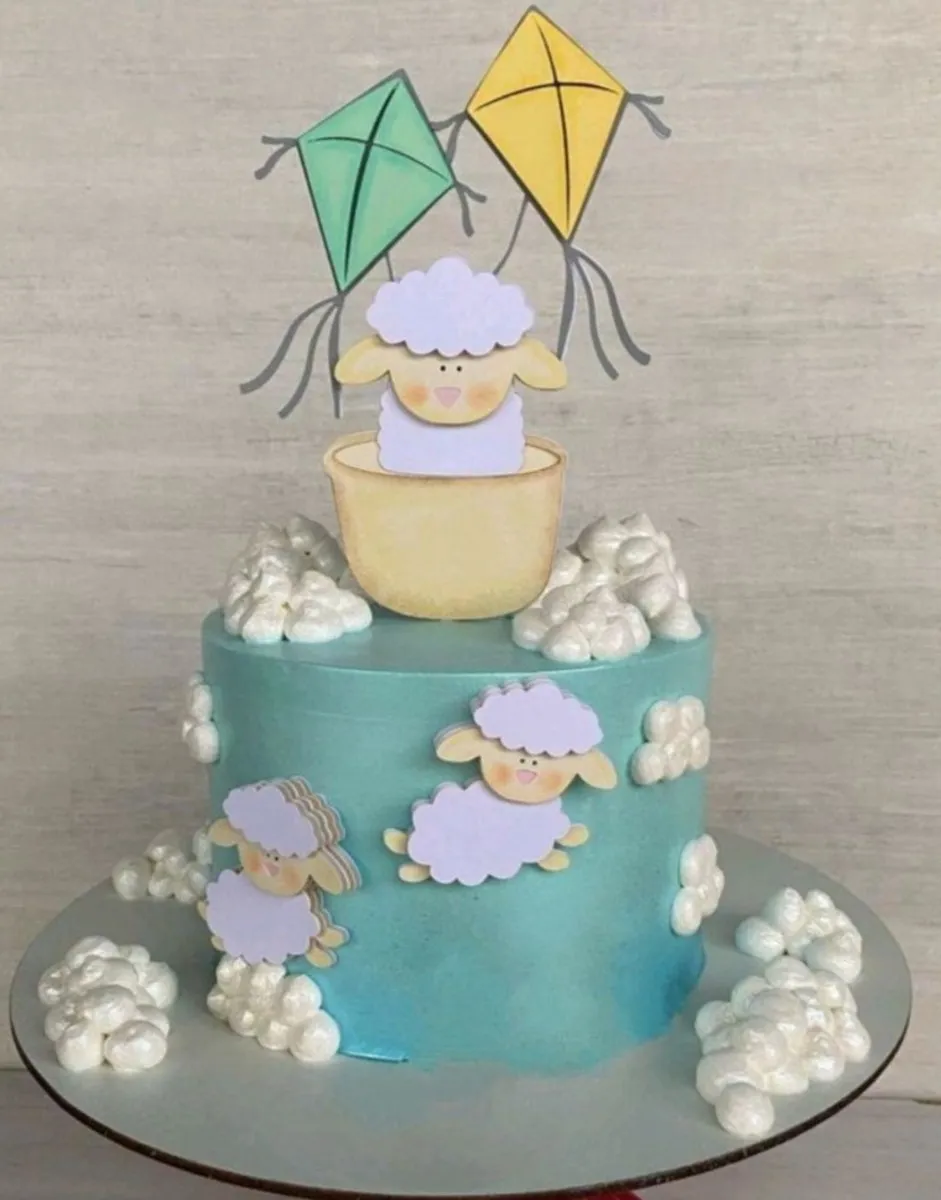 Outro detalhe importante é a flexibilidade do arquivo. Você pode redimensionar o topo conforme o tamanho do bolo. Dessa forma, ele se adapta a diferentes estilos de festas, desde as mais simples até as mais elaboradas. Além disso, o tema de ovelhinhas é atemporal e sempre conquista os corações dos pequenos e dos adultos.
