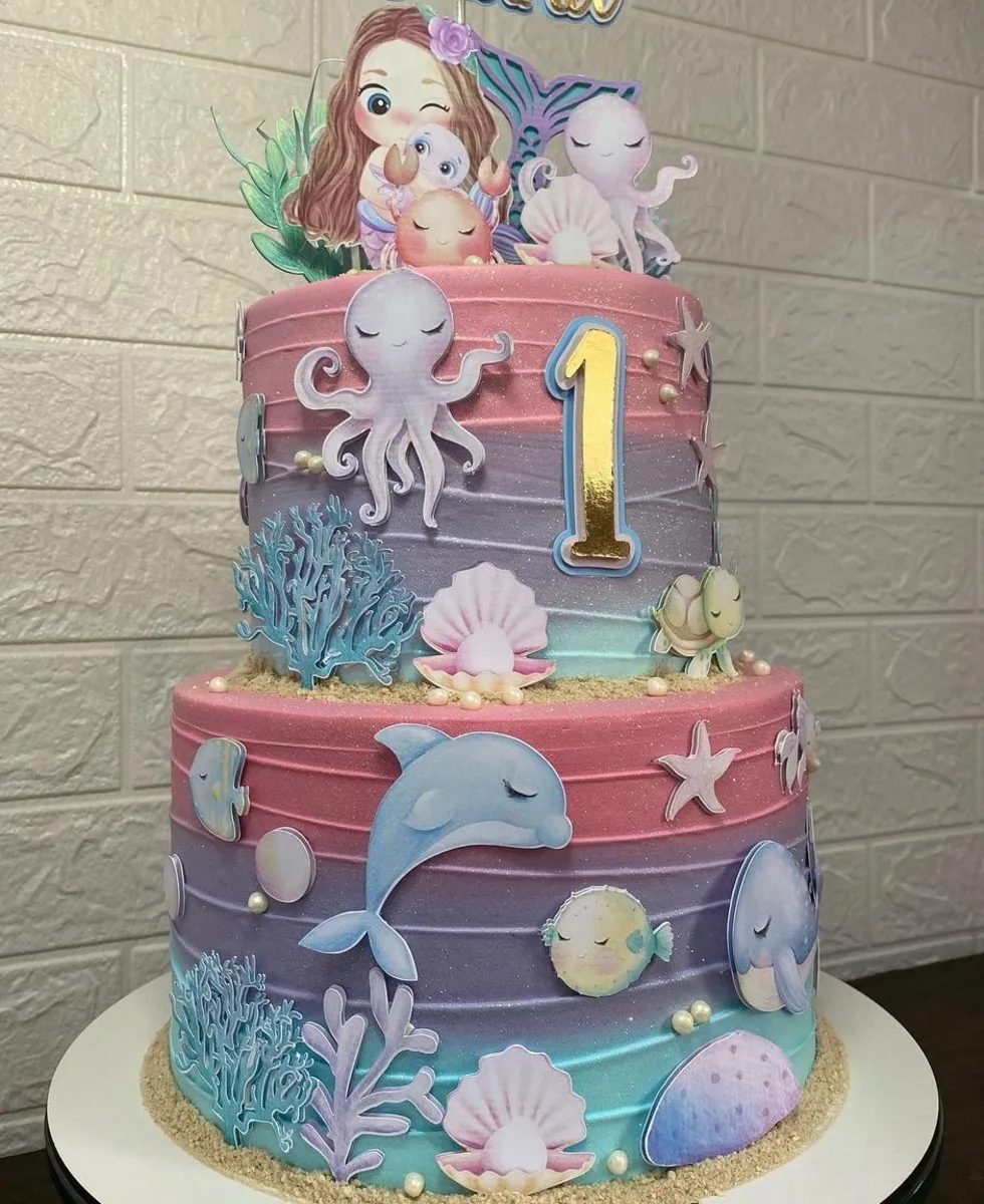 Além de ser um destaque na mesa principal, esse topo harmoniza perfeitamente com docinhos, lembrancinhas e painéis decorativos no mesmo estilo. Assim, toda a festa ganha um ar mágico e sofisticado, com a sensação de estar em um verdadeiro mergulho no oceano.